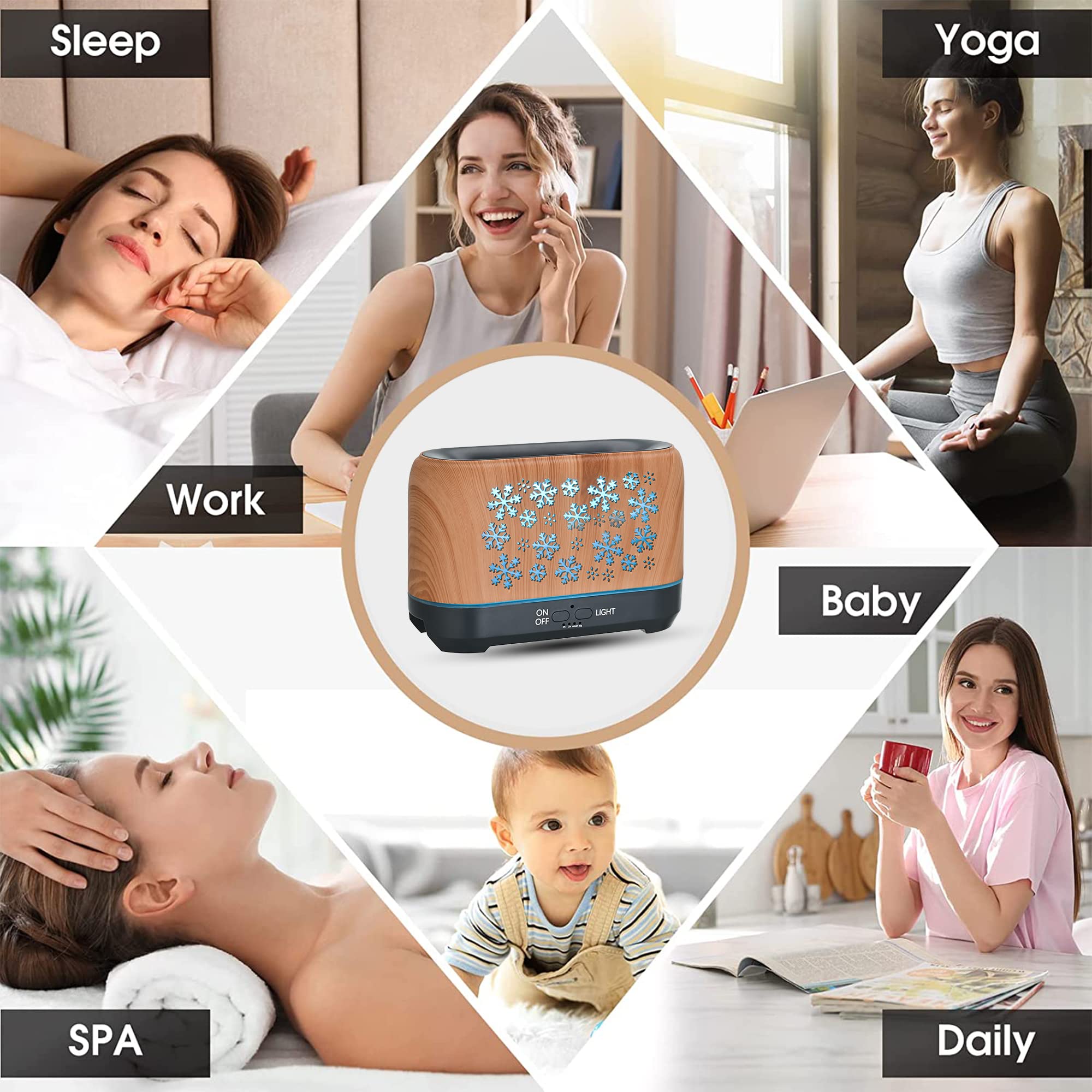 4.【WHISPER QUIET DIFFUSER】:With unique noise reduction technology, the noise of the diffuser can be controlled below 24dB, Improve your sleep quality and soothe your mood, relieve your stress during working, studying, yoga or spa.