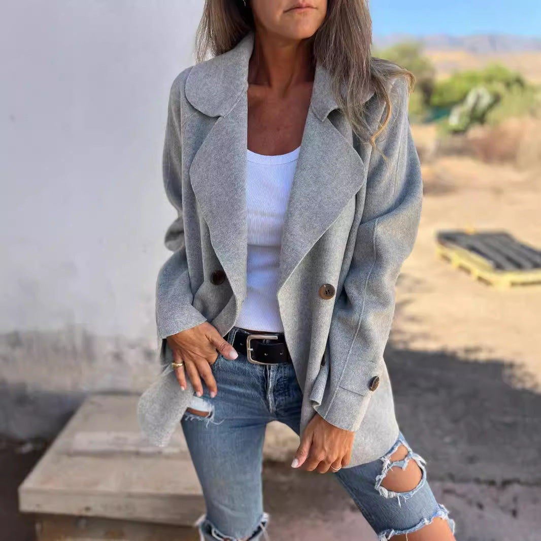 Double-faced Woolen Goods Casual Polo Collar Long Sleeve Button Coat